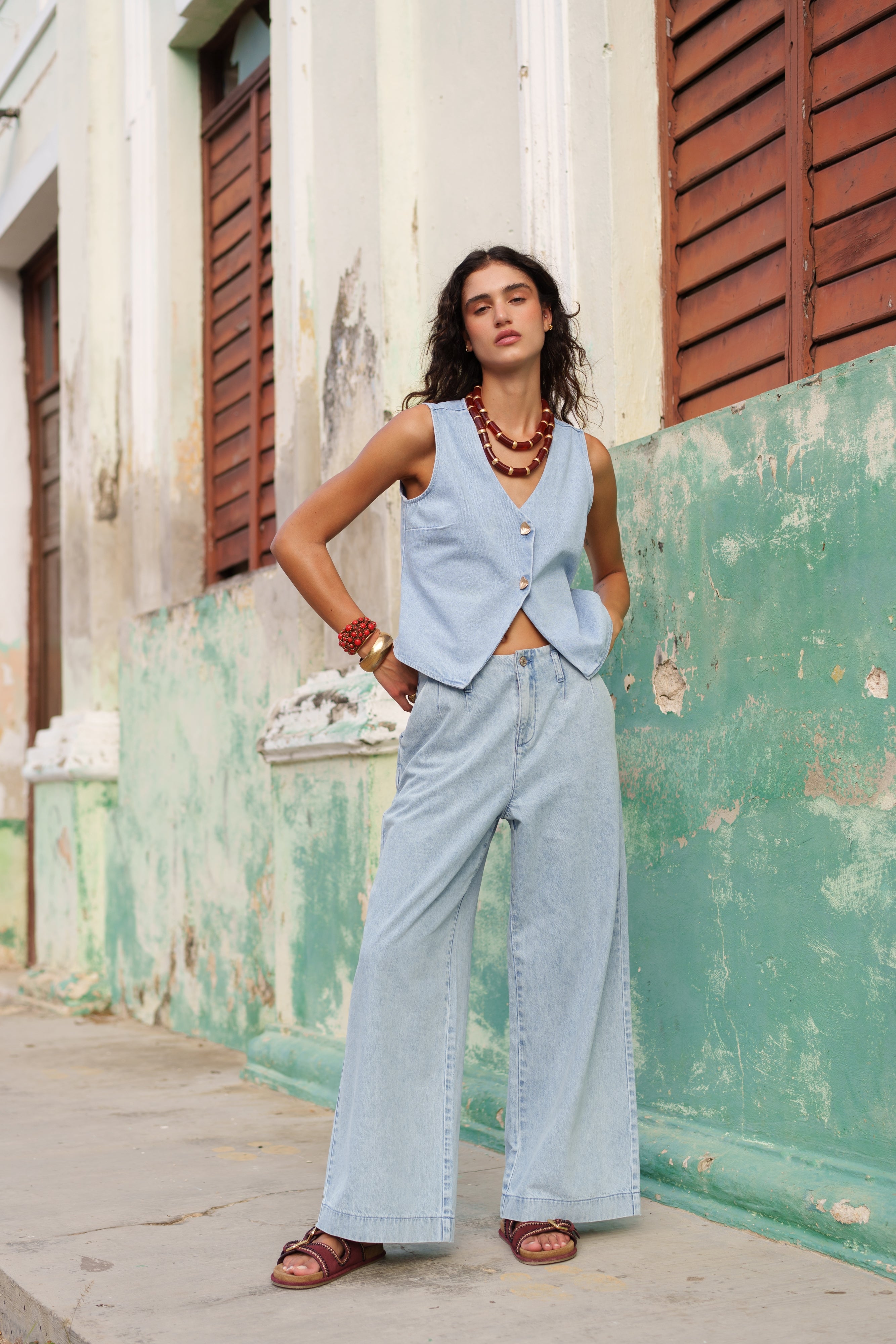 A must-have for any modern wardrobe, our Julie jeans are crafted from premium denim. Their wide leg exudes comfort and elegance. The Julie jeans are fitted at the waist to flatter your silhouette. Inspired by super-wide suit pants, the Julie jeans will bring you comfort and style in every situation.