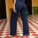 "I created the Windy jeans for my mother-in-law who is 1m55 tall so she could finally have jeans in her length and I find that the wide cut lends itself well to a jump length, it gives it a bit of a culottes look."