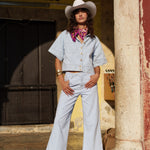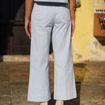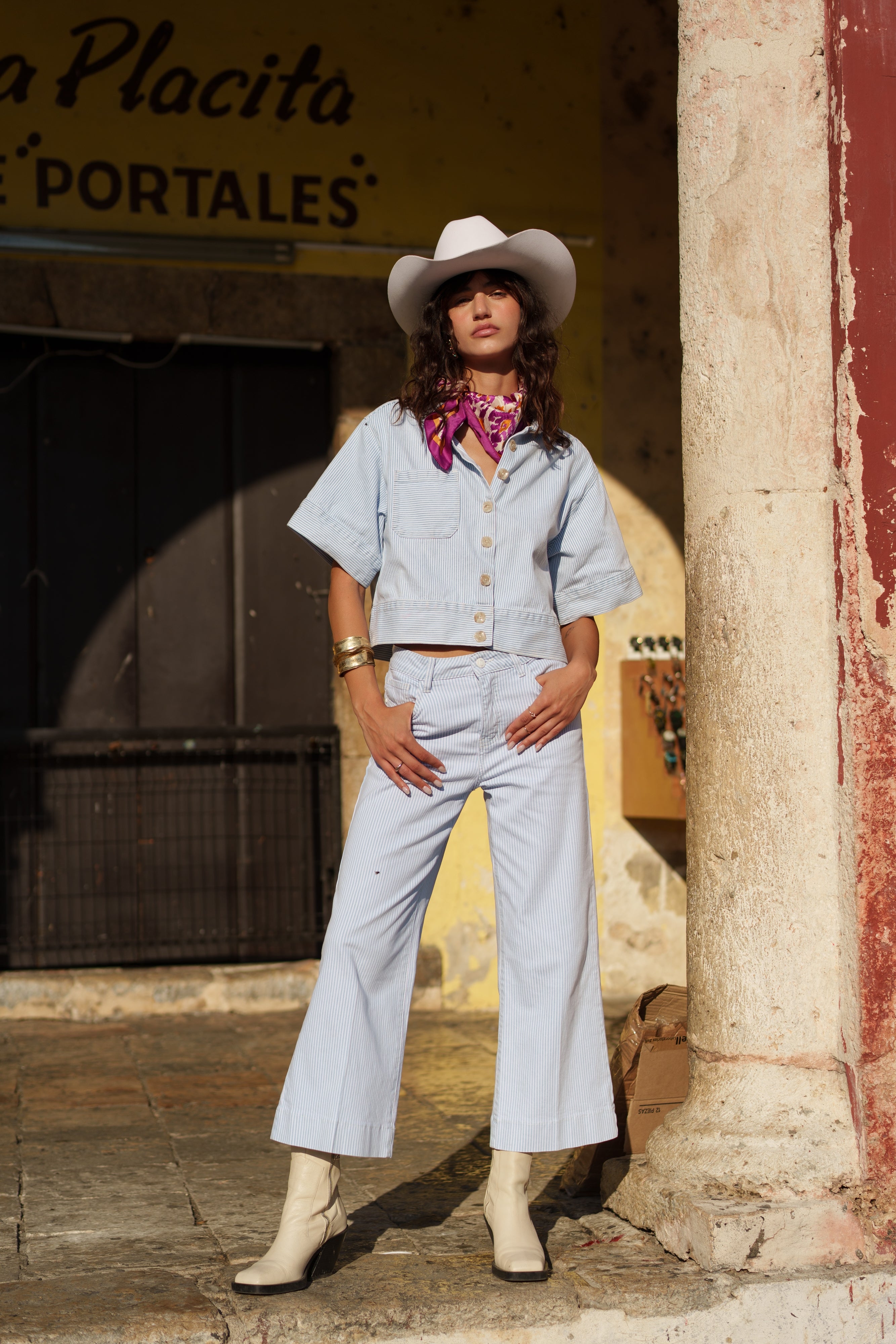 "I created the Windy jeans for my mother-in-law who is 1m55 tall so she could finally have jeans in her length and I find that the wide cut lends itself well to a jump length, it gives it a bit of a culottes look."
