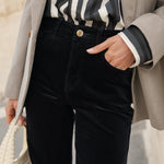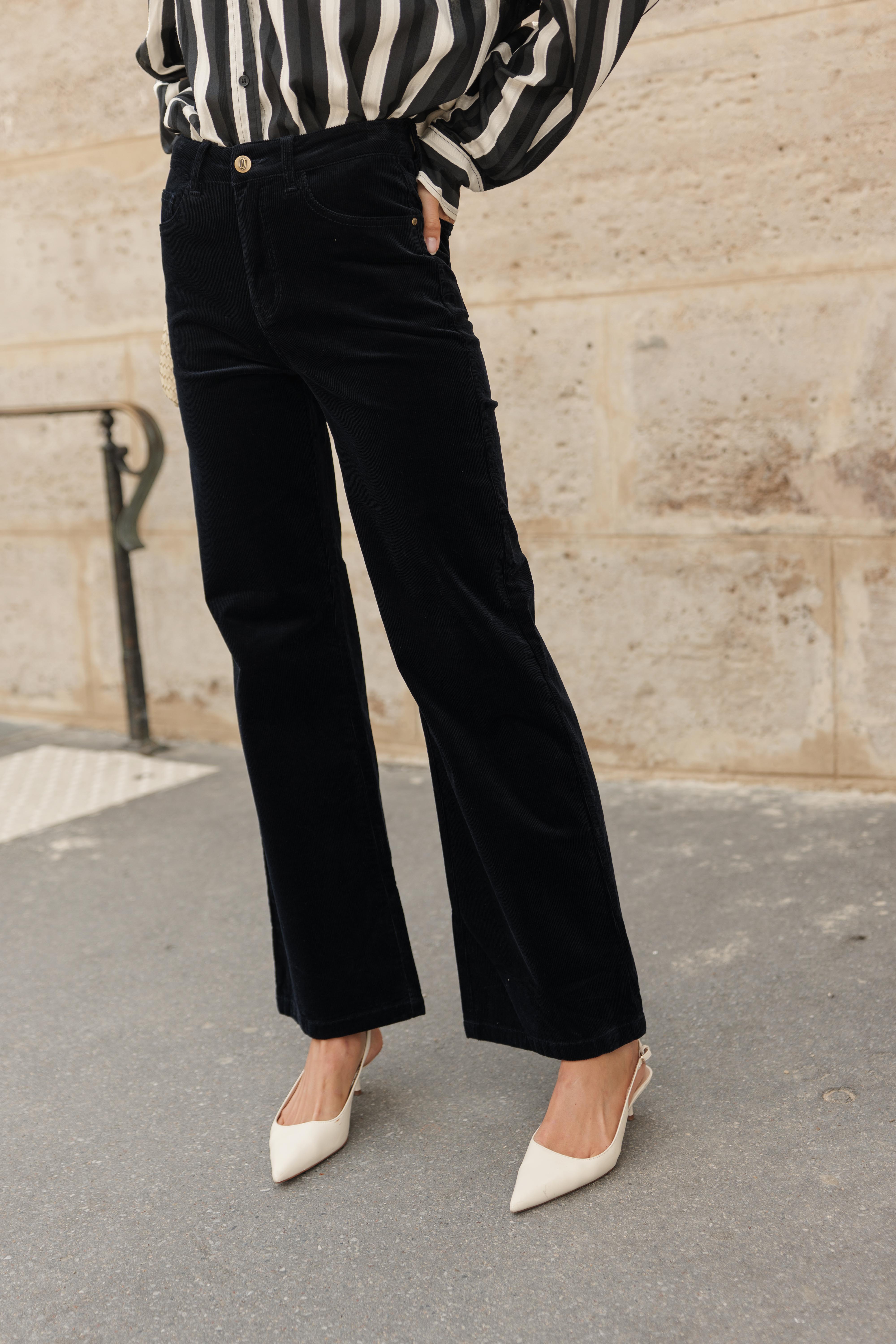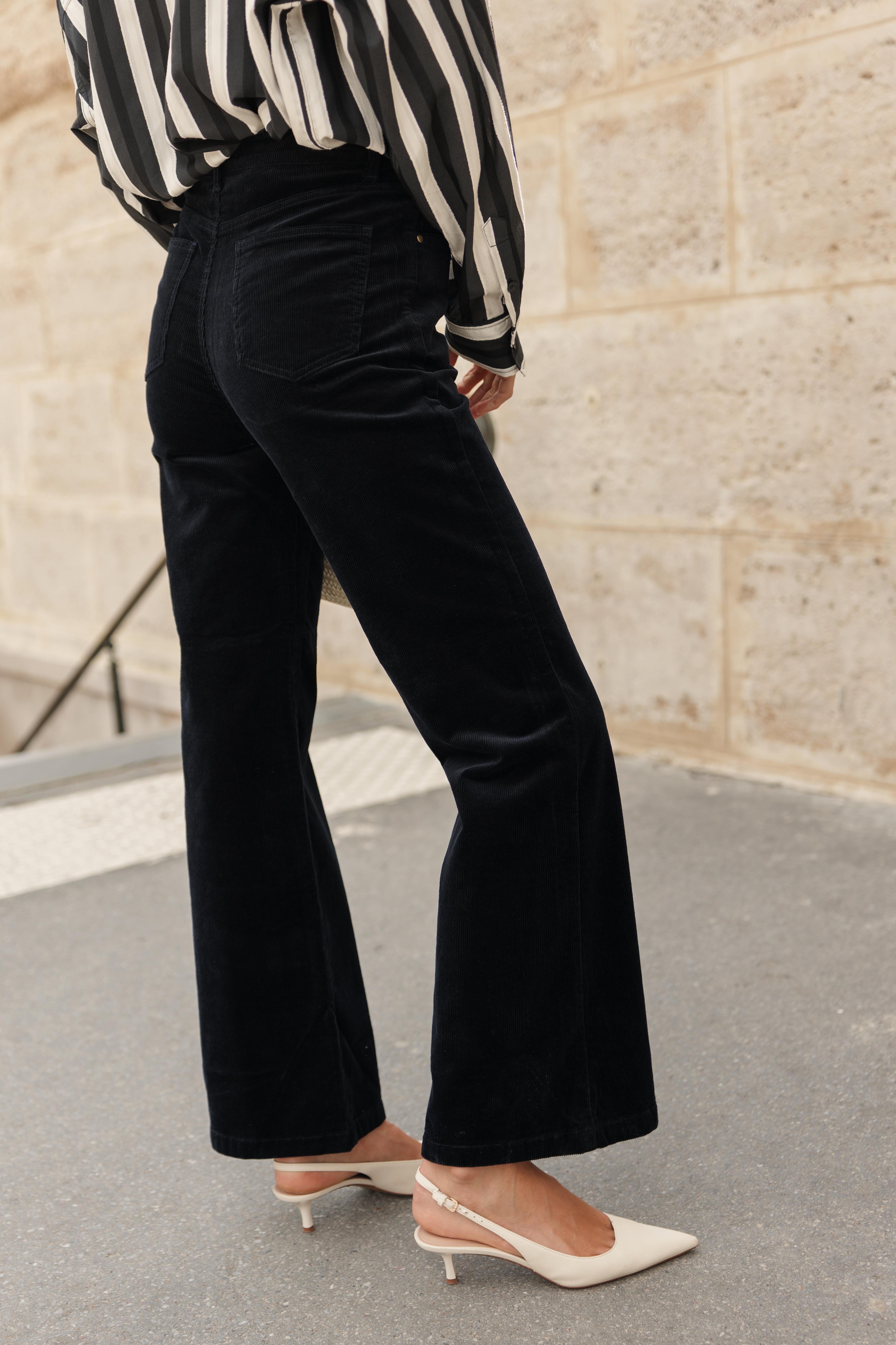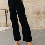 The Ava pants are wide-cut velvet pants, meaning they will be flared from the hips to the bottom of the leg.