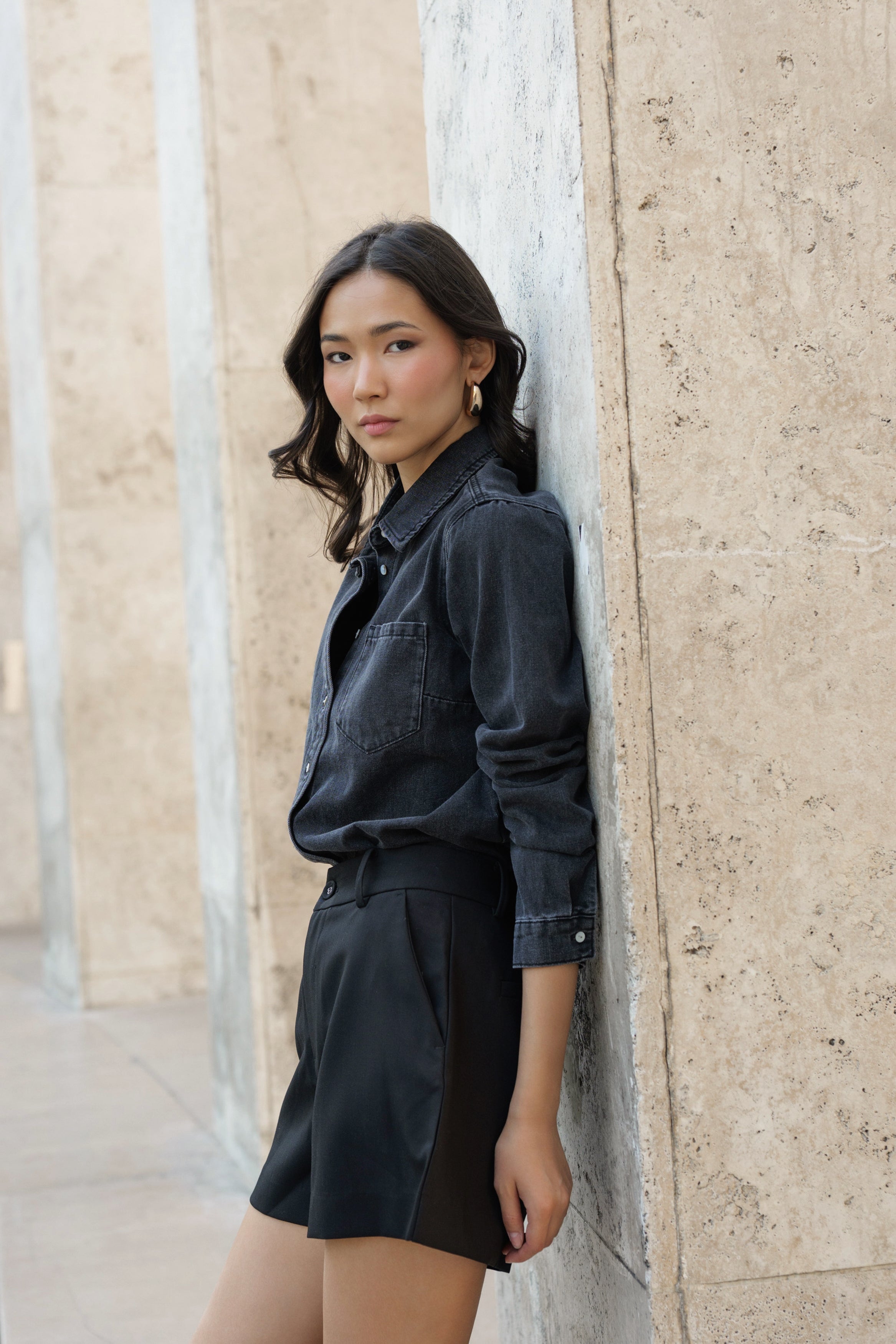 The Brenda shorts are made of fluid canvas which means they do not stick to your thighs.