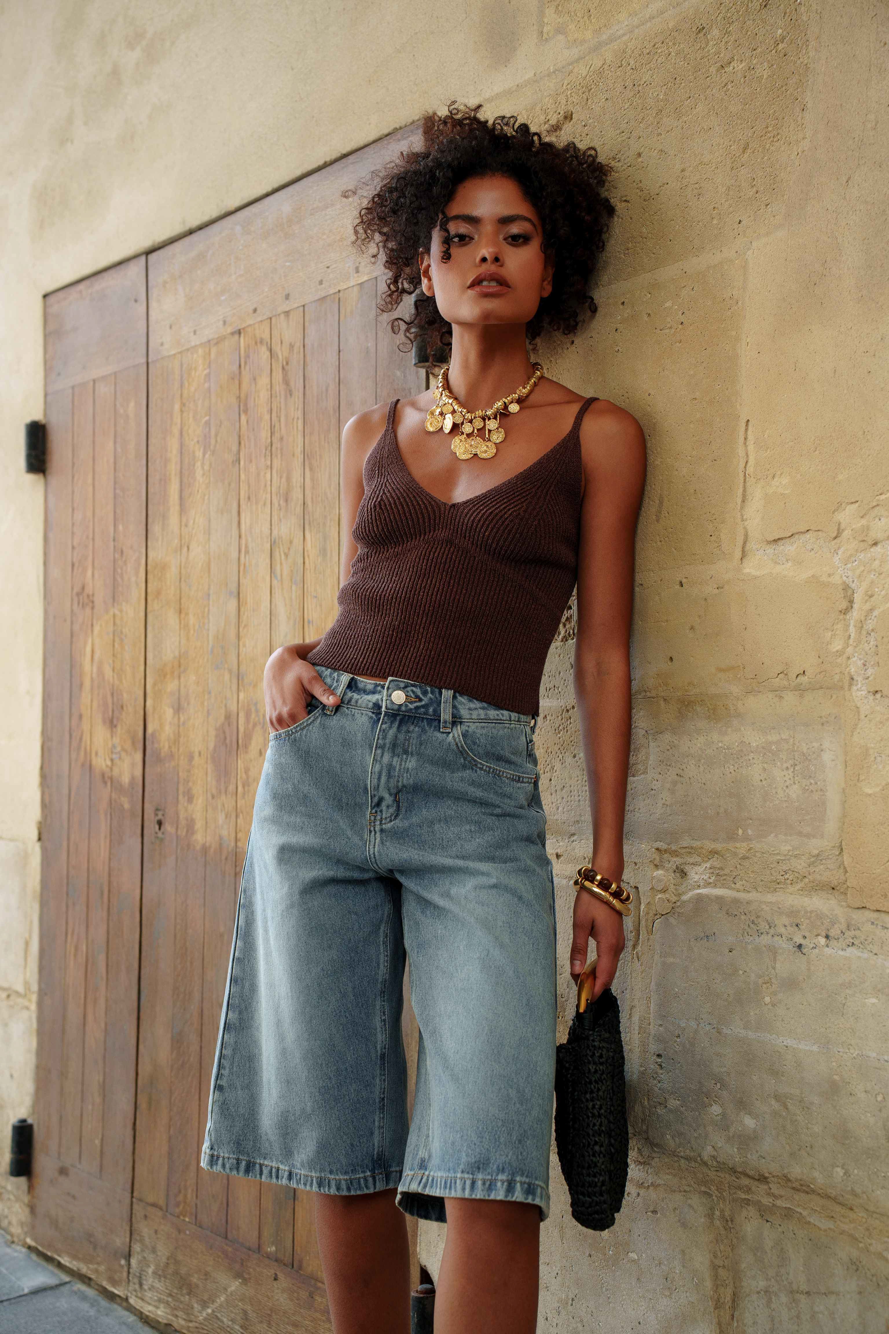 Optez pour un look en très tendance avec le bermuda Serena. Sa coupe large et son denim bleu vintage l'ancre dans l'ère du temps en lui donnant un look effortless.