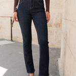 Découvrez le jean Bella, notre jean bootcut. La coupe bootcut est une coupe droite sur la cuisse qui s'évase légèrement à partir du genou, littéralement le but de la coupe est de laisser passer une bottes sous le jean - boot - cut.