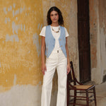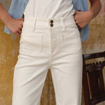 Optez pour l’élégance de notre jean Elena, adapté à vos looks du quotidien. Sa coupe flare qui épouse la cuisse sans la coller avant de s’évaser élégamment et sa taille haute qui met en valeur la taille et allonge la jambe, permettent de créer un effet visuel parfait.