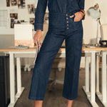 Découvrez notre jean Stan, un modèle parfait pour se rendre au bureau : il est le parfait mélange du pantalon de costume rétro et du jean. Ce jean a une coupe wide, c'est à dire qu'il est évasé à partir des hanches jusqu'en bas de jambe c'est une coupe qui flatte la majorité des silhouettes.