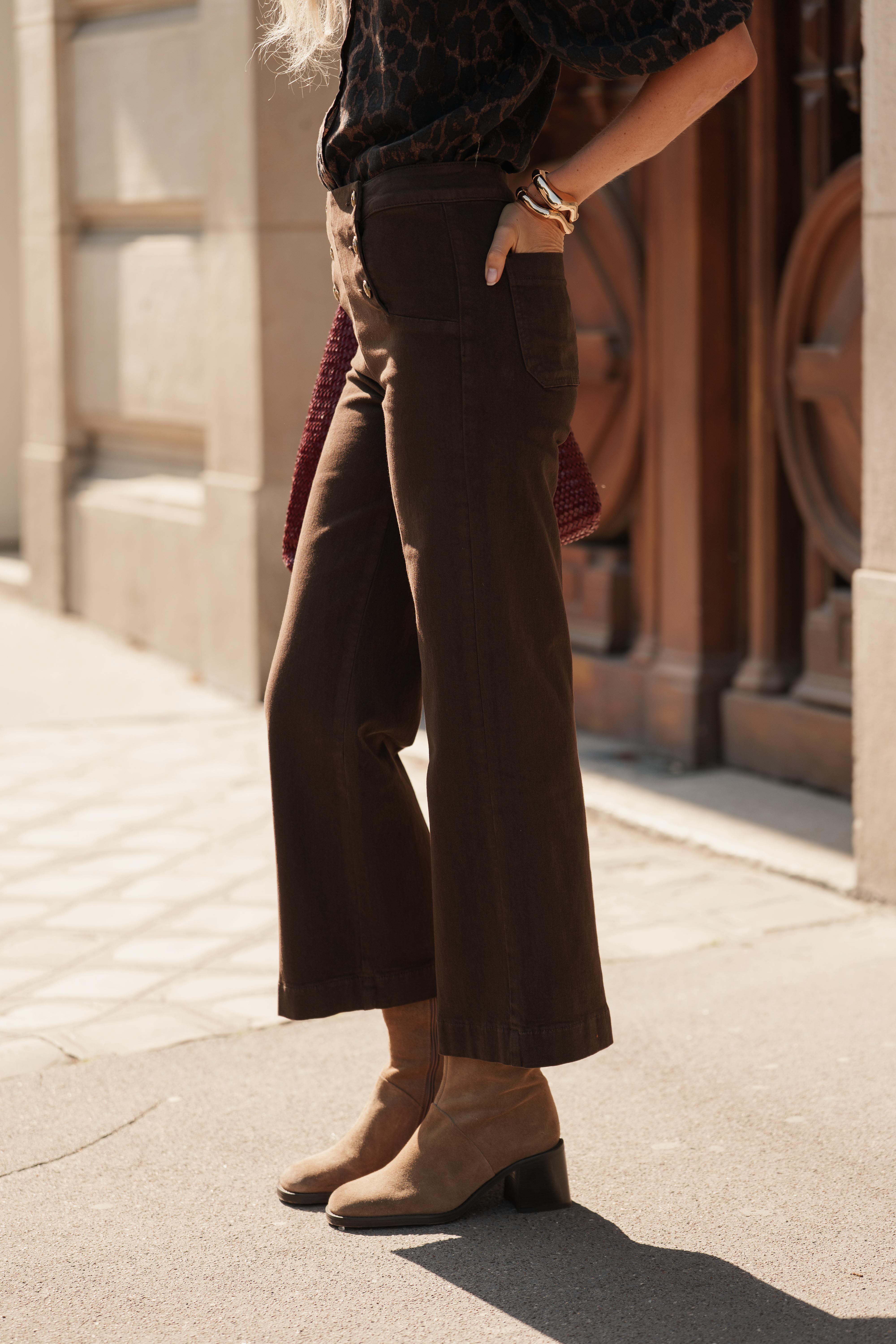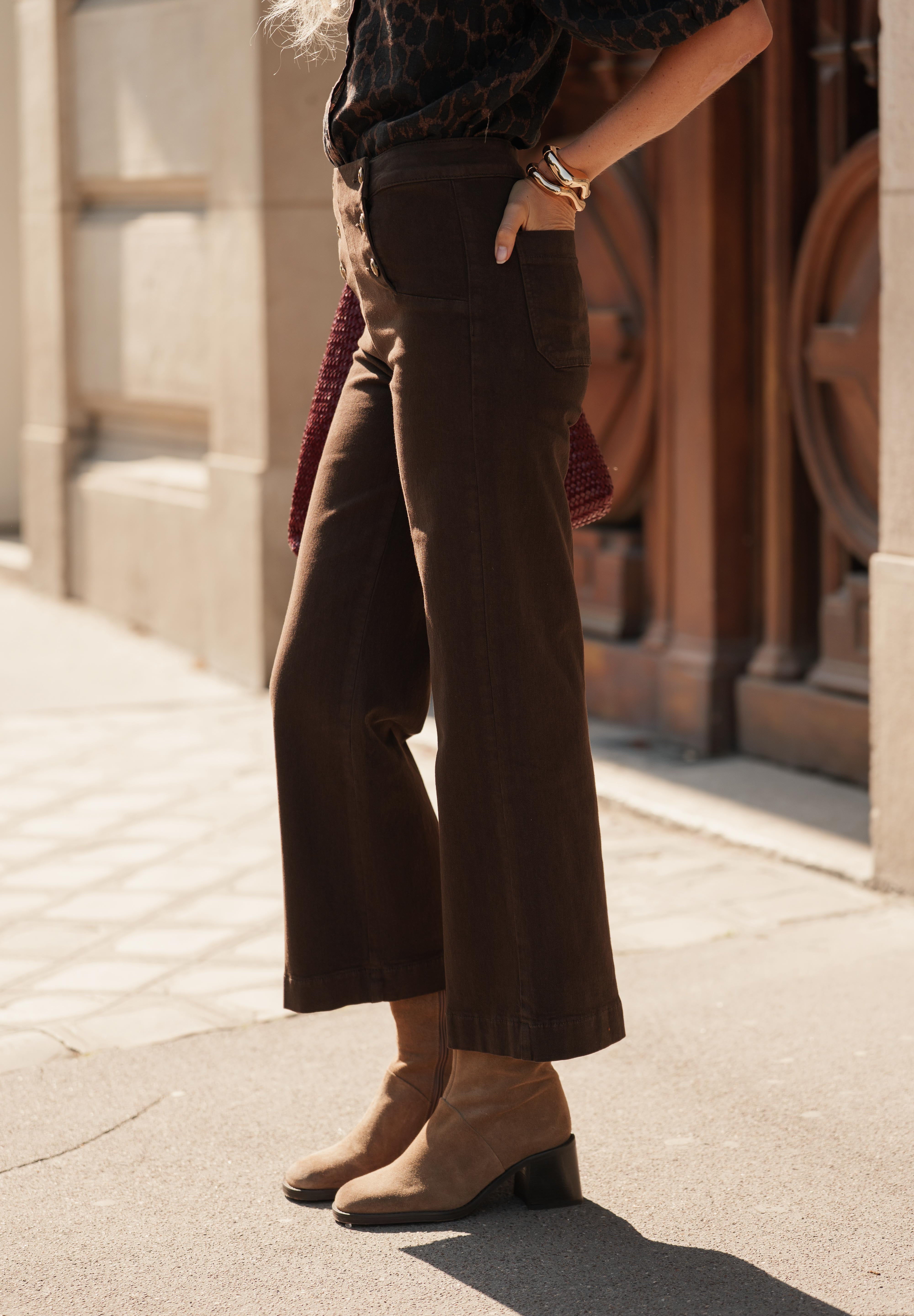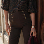 Le jean Victorine a été conçu avec des détails précis qui le rendent unique : ses boutons à pont. C'est en ce détail que réside l'élégance et l'originalité de ce jean. En effet le positionnement de ceux-ci en légère diagonale permet d'affiner la taille, de plus si vous y regardez de plus près ses boutons sont d'inspiration "marine" ils ont un look très singulier et reconnaissable.