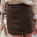 Craquez pour notre jupe Dalia, la mini jupe en suédine qu'il vous faut à tout prix pour cet hiver.