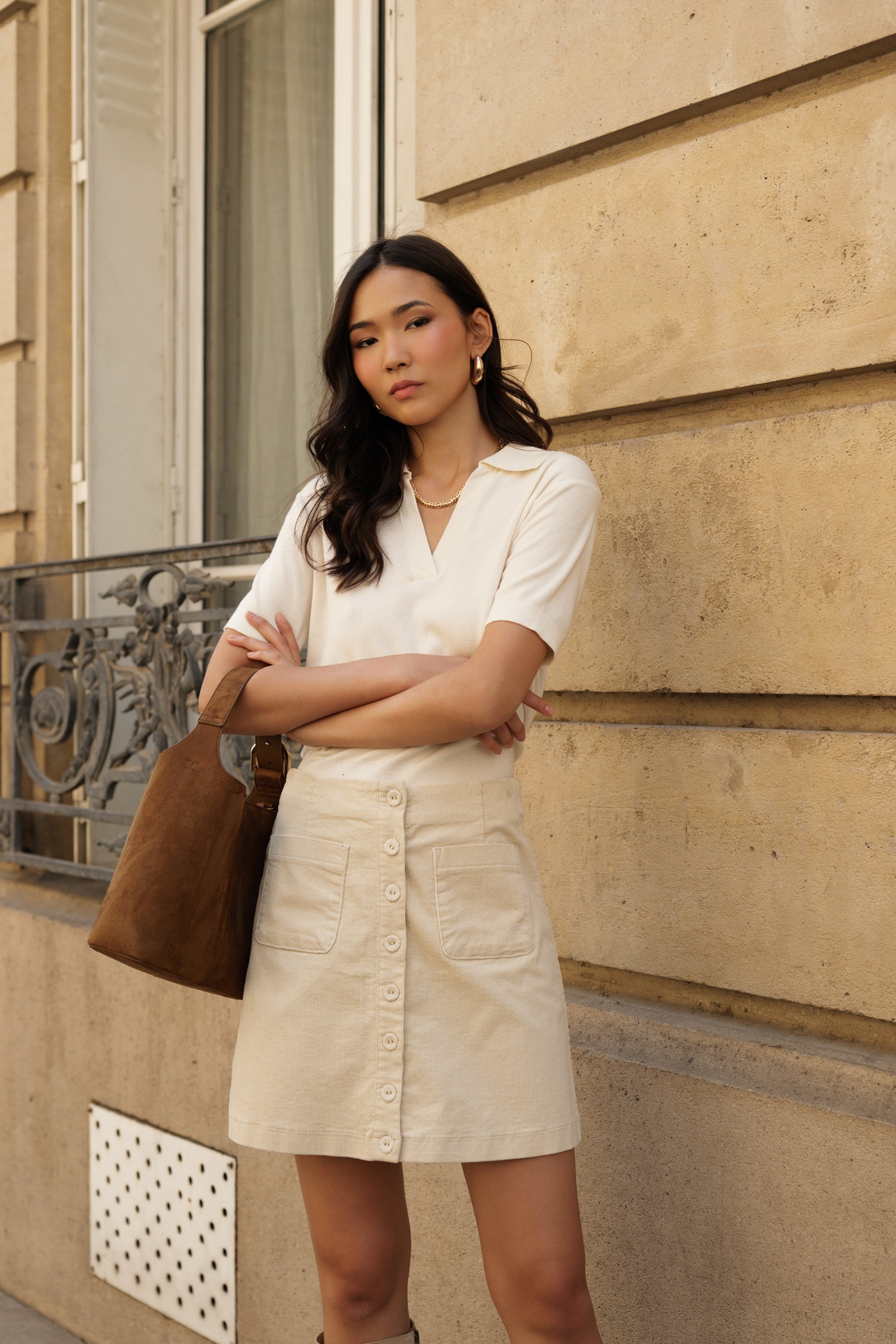 La jupe Jess a été conçu avec des détails précis lui donnant son style si unique comme ses poches plaquées à l'avant, qui, combinées avec sa matière en velours côtelé lui donne un look vintage.