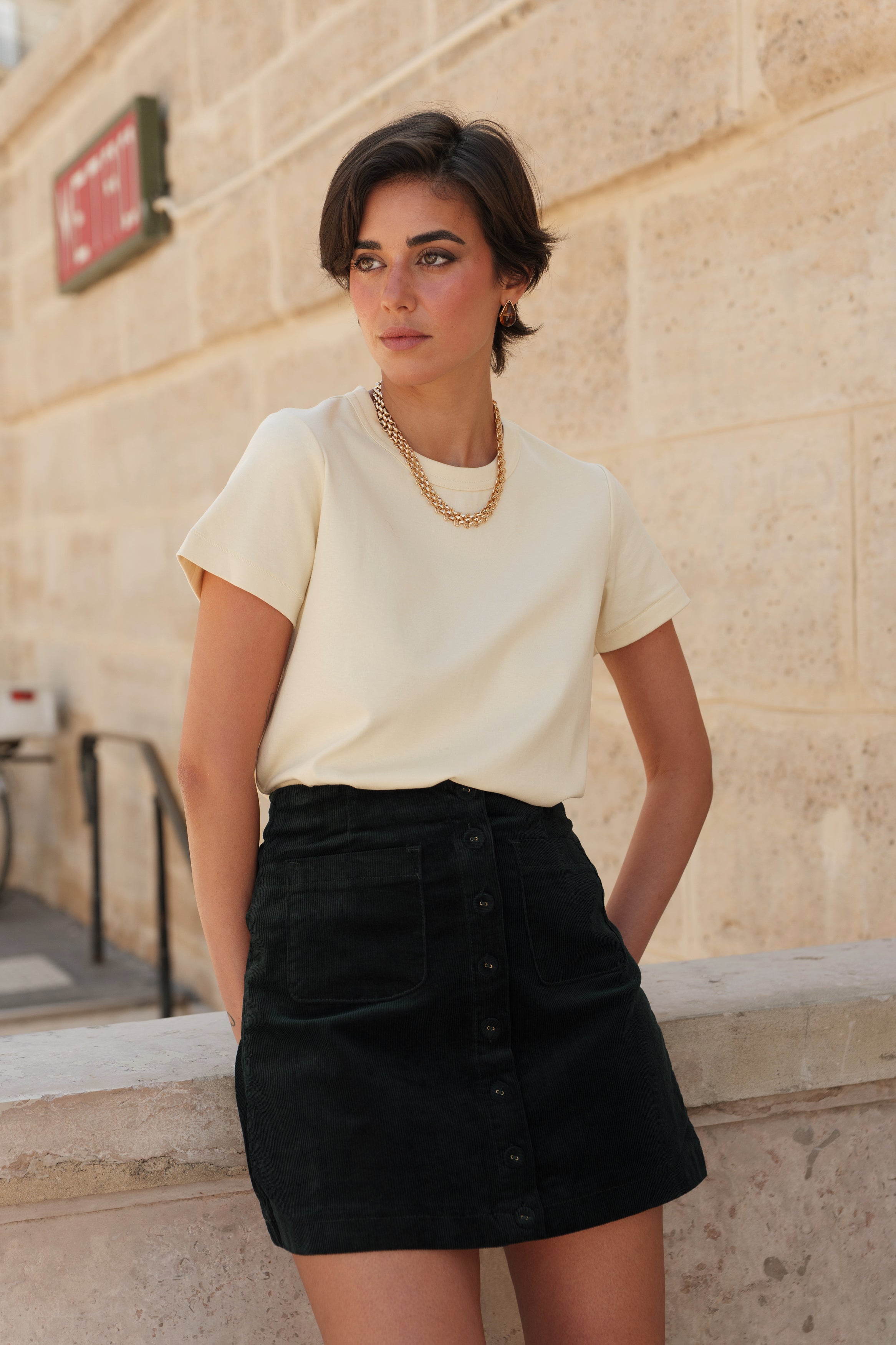 La jupe Jess a été conçu avec des détails précis lui donnant son style si unique comme ses poches plaquées à l'avant, qui, combinées avec sa matière en velours côtelé lui donne un look vintage.