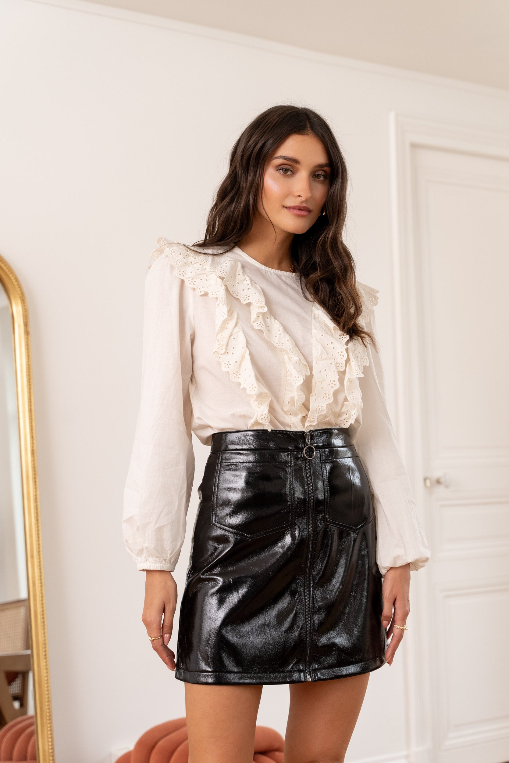 Notre Jupe Joao, une pièce exclusive au style sophistiqué en vinyle noir. Sa forme trapèze courte suit les formes de votre corps tout en gommant le ventre pour mettre en valeur votre silhouette tandis que le vinyle apporte une touche rock à vos tenues même les plus simple.
