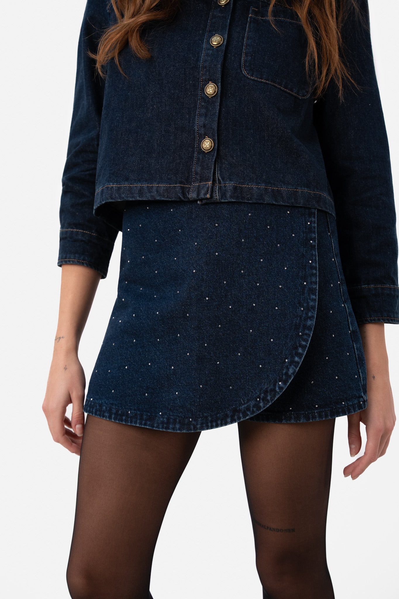 Soyez audacieuse avec notre jupe-short à strass Jenna, grâce à son effet jupe ultra féminine sur l'avant et son short intégré discret à l'arrière, elle vous garantit une liberté de mouvement totale tout en gardant votre élégance. Les strass parsemés sur cette pièce apportent de l'éclat à votre tenue de jour comme de nuit.