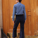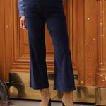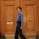 Le Pantalon Pedro est un pantalon large flare. Depuis quelques années nous avons assisté à un retour du vintage et nous adorons ça chez Oraije ! La coupe flare est une coupe originaire des années 70, c'est une coupe ajustée aux hanches et aux cuisses qui s'évase à partir des genoux. Pour la moderniser un peu, vous la retrouvez ici en large flare, c'est à dire que ce flare va être un peu plus large au niveau des cuisses que la version originelle.