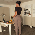Optez pour l'élégance du pantalon Stanley. Sa coupe droite large sa suivre votre jambe sans la coller et sa taille haute cintrée va faire ressortir votre jolie taille. Le pantalon Stanley est votre allié parfait pour une journée au bureau ou pour un évènement formel.