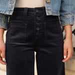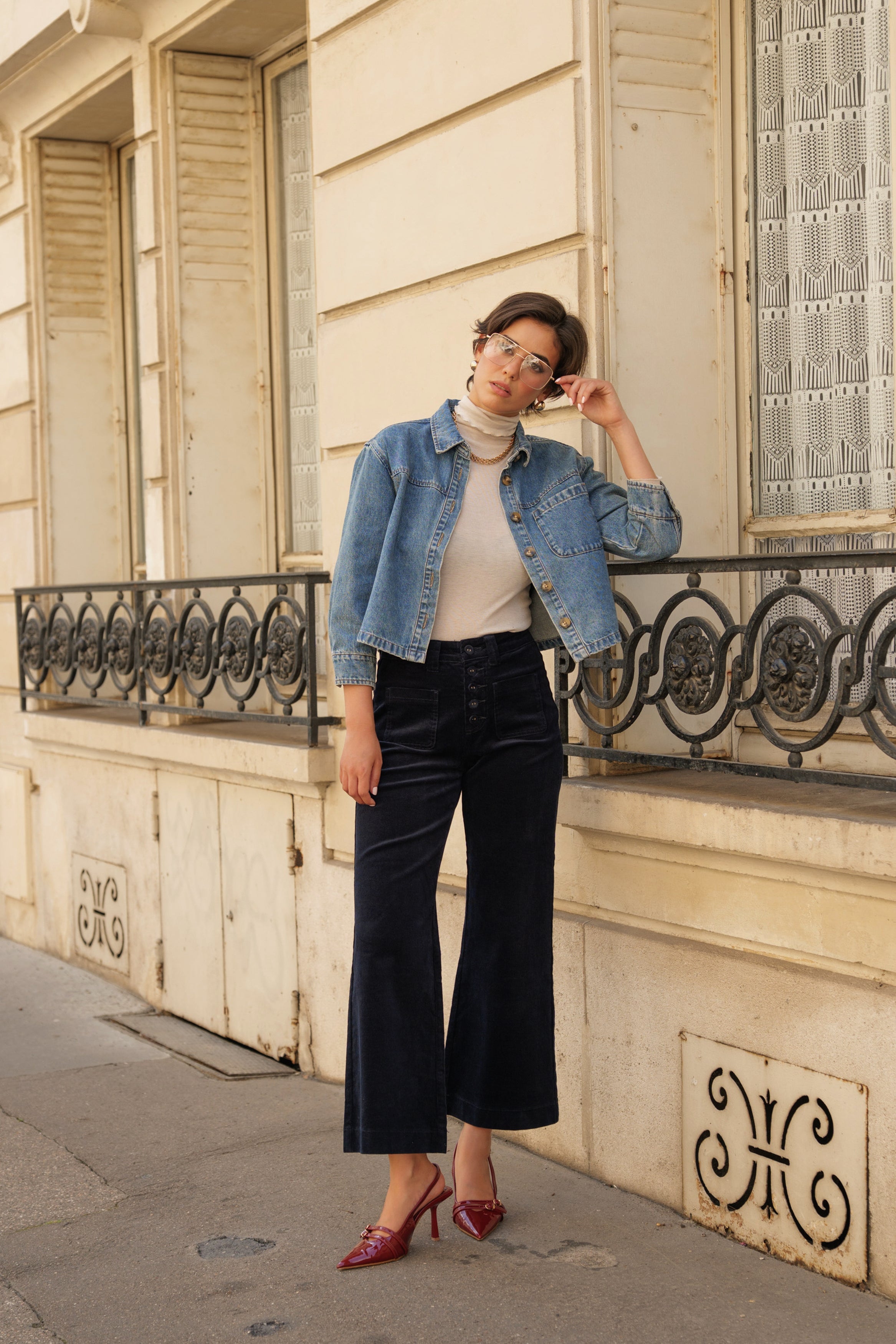Le pantalon Viviane a été conçu avec des détails très précis pour lui donner un look exclusif. Tout d'abord sa matière en velours supérieur le rendre à la fois très élégant et très confortable en toutes situations. De plus ses poches plaquées à l'avant et sa fermeture par une rangée de bouton lui donne un look vintage qui rentre totalement dans l'ère du temps.