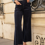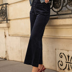 Découvrez notre pantalon Viviane, ce pantalon en velours avec une coupe wide. C'est une coupe qui va être cintré à la taille puis qui va s'évaser jusqu'en bas de jambes. C'est la coupe à adopter pour élancer votre silhouette.