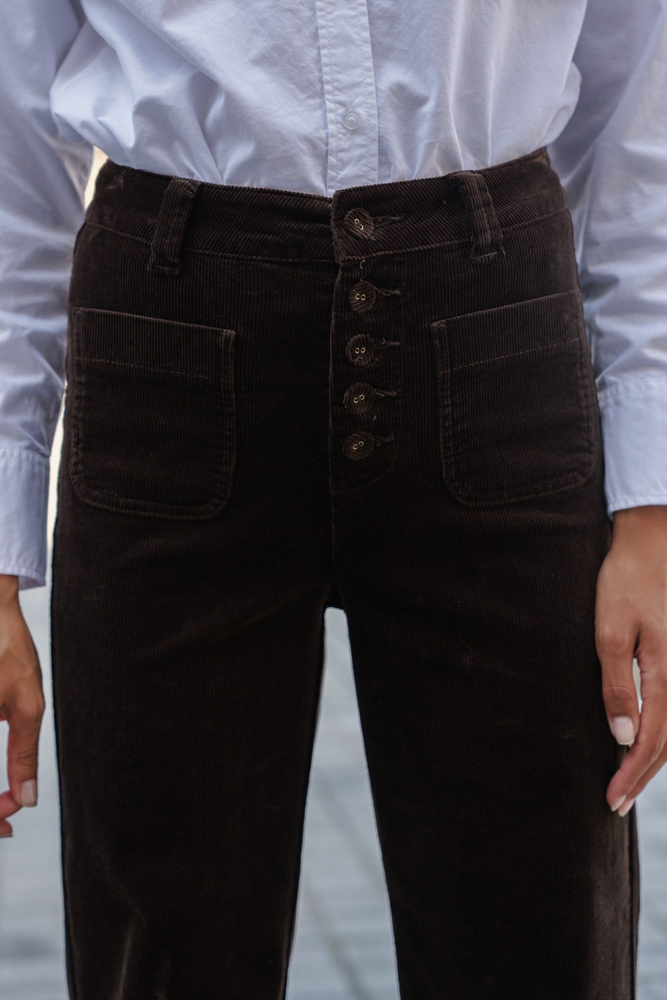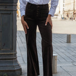 Le pantalon Viviane a été conçu avec des détails très précis pour lui donner un look exclusif. Tout d'abord sa matière en velours supérieur le rendre à la fois très élégant et très confortable en toutes situations. De plus ses poches plaquées à l'avant et sa fermeture par une rangée de bouton lui donne un look vintage qui rentre totalement dans l'ère du temps.