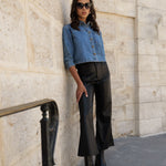Découvrez le pantalon Wileme, la pièce indispensable pour un look moderne et raffiné. Ce pantalon a une coupe wide c'est à dire que c'est un pantalon qui va être cintré à la taille puis va s'évaser des hanches aux chevilles, c'est une des coupes les plus flatteuses pour la majorité des morphologies.