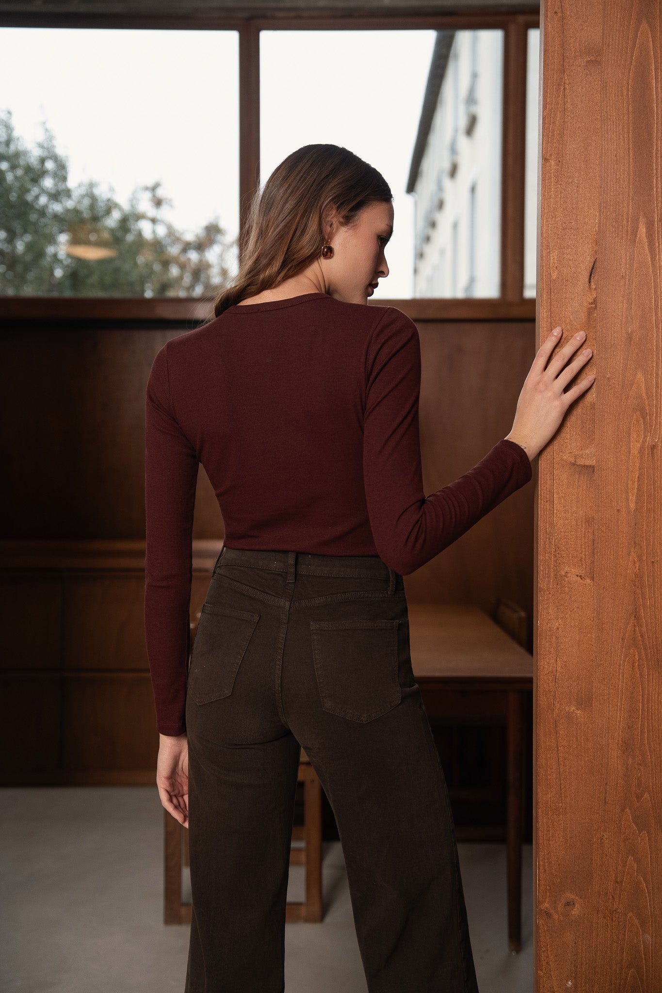 Adoptez notre t-shirt Olga, un de nos essentiel de l'hiver pour vous maintenir bien au chaud.